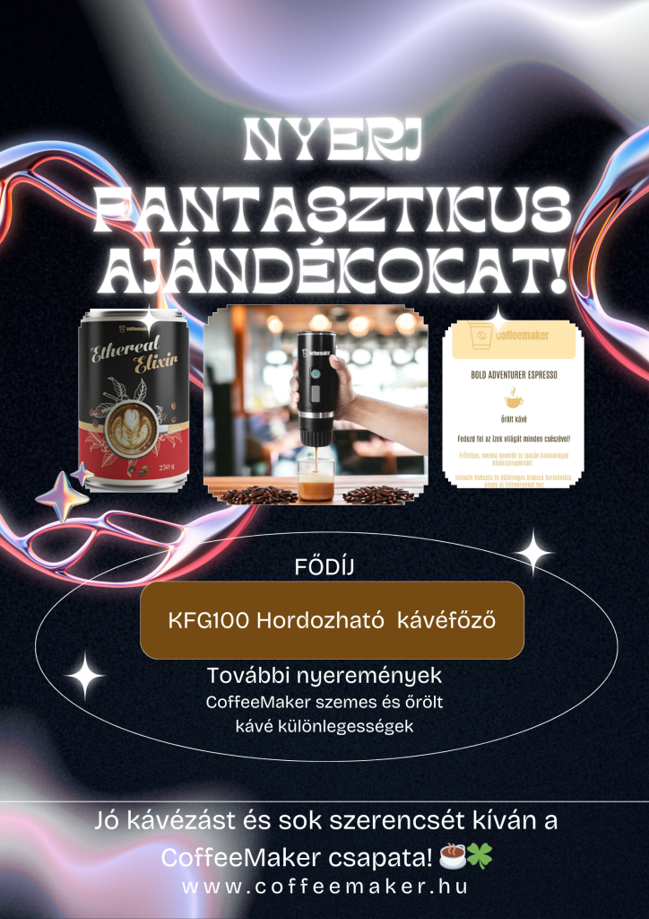 Fődíj: Egy vadonatúj KFG100 típusú hordozható kávéfőző! ☕